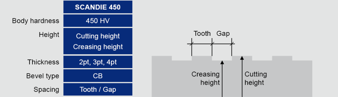 ![]() | Vhodné pro krátké a střední série výseků z hladké a vlnité lepenky. Tvrdé tělo poskytuje vynikající stabilitu, zatímco povrchové oduhličení zajišťuje ideální ohybatelnost.. | ![]() |
