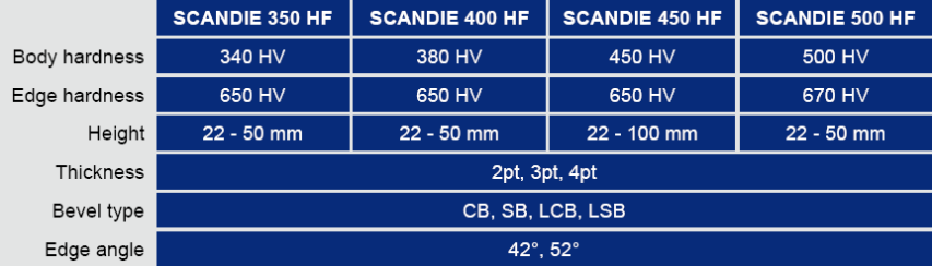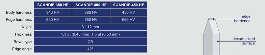 Pásová nožovina z oceli SCANDIE je ze 100% vyráběna v RAKOUSKU pomocí nejmodernějšího vybavení a přesně dle norem stanovených Evropskou asociací (ESD). |