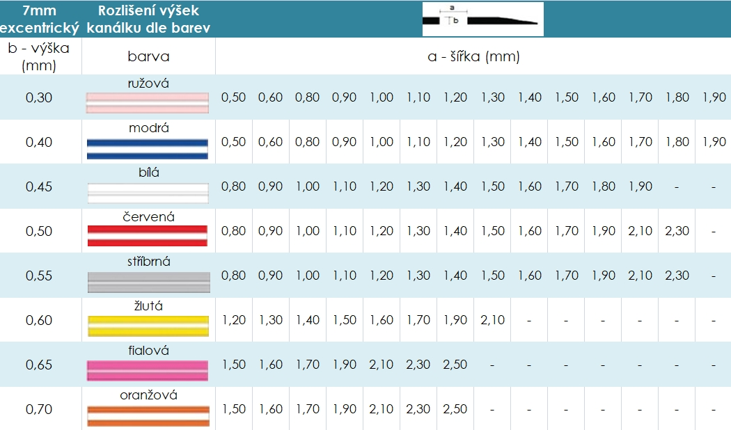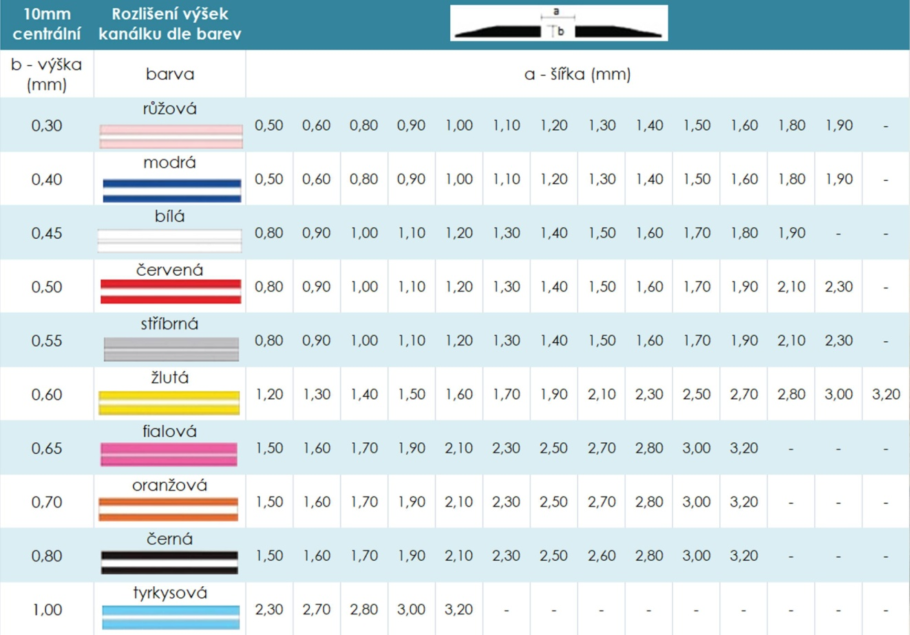 Rozteč mezi dvěma kanálky – 3mm/ 4mm/ 5mm